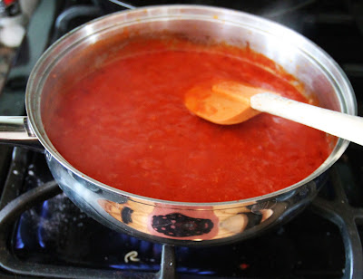 cook garlic, red pepper and salt in EVOO over low heat for a few seconds. be careful not to brown garlic |